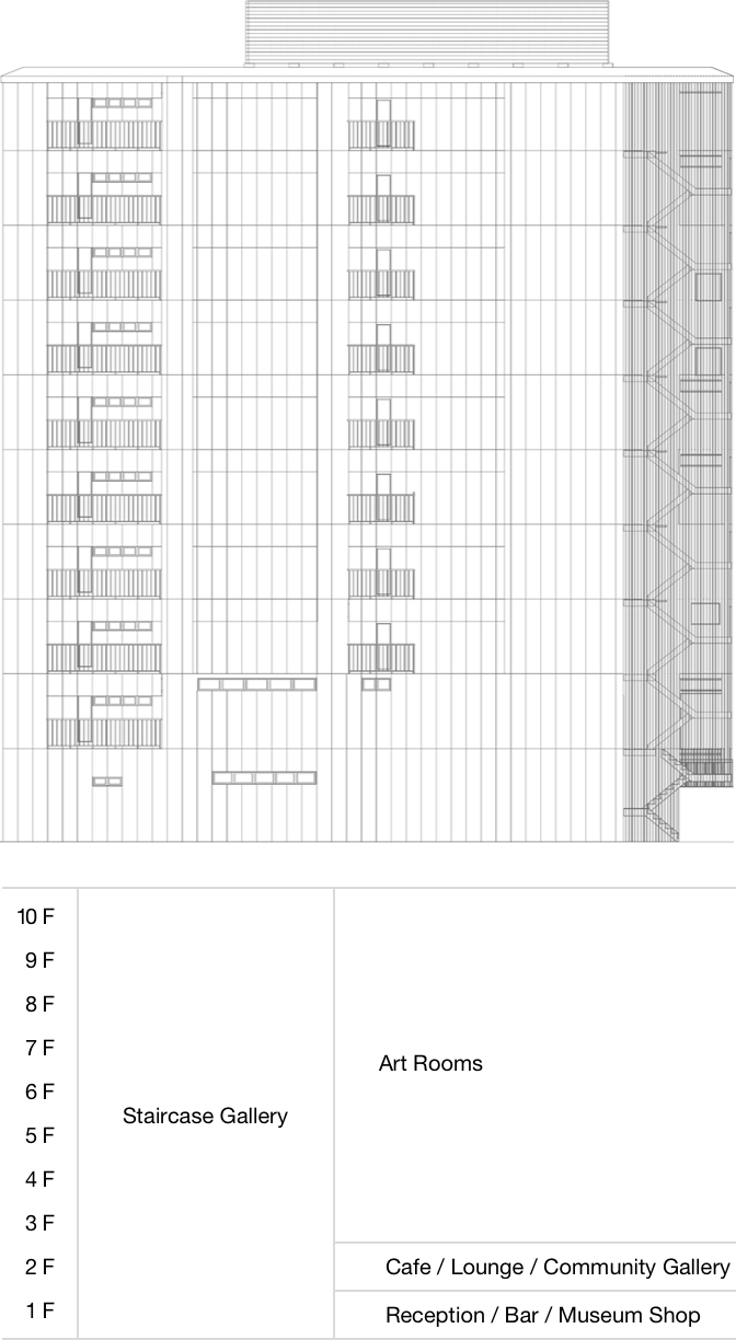 10階の階段に先進的なアートが並ぶ、ステアケースギャラリー。