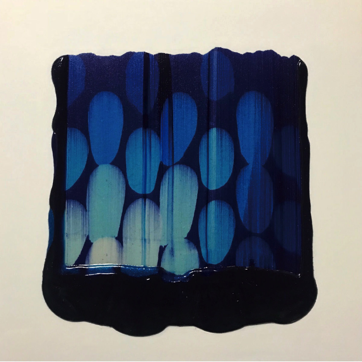 Katsuki’s minimalist paintings pay homage to their most fundamental elements, the paint and the single stroke. The paint is the protagonist in this story, with the single stroke playing the antagonist asking to be repeated, to be fixed, to thin out the paint, reduce its potency. However, Katsuki has tamed the single stroke. The vibrant blue paint used in Katsukis work is an ancient egyptian pigment know as lapis lazuli.