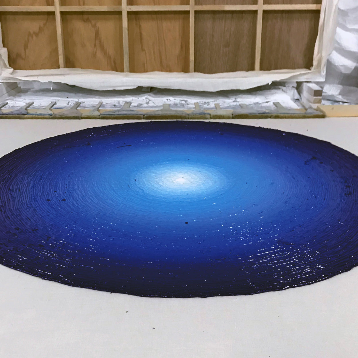 世界最古の合成顔料は3500年前にエジプトで作られた青色だった。それは「作られたラピスラズリ(作られた青)」と呼ばれていた。それゆえに私は作られた絵具の象徴として青を使用している。
